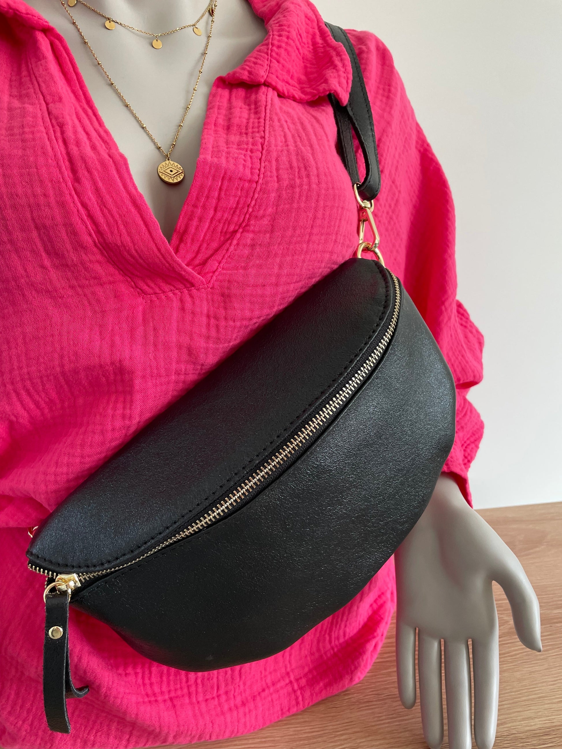 Sac banane noir brillant